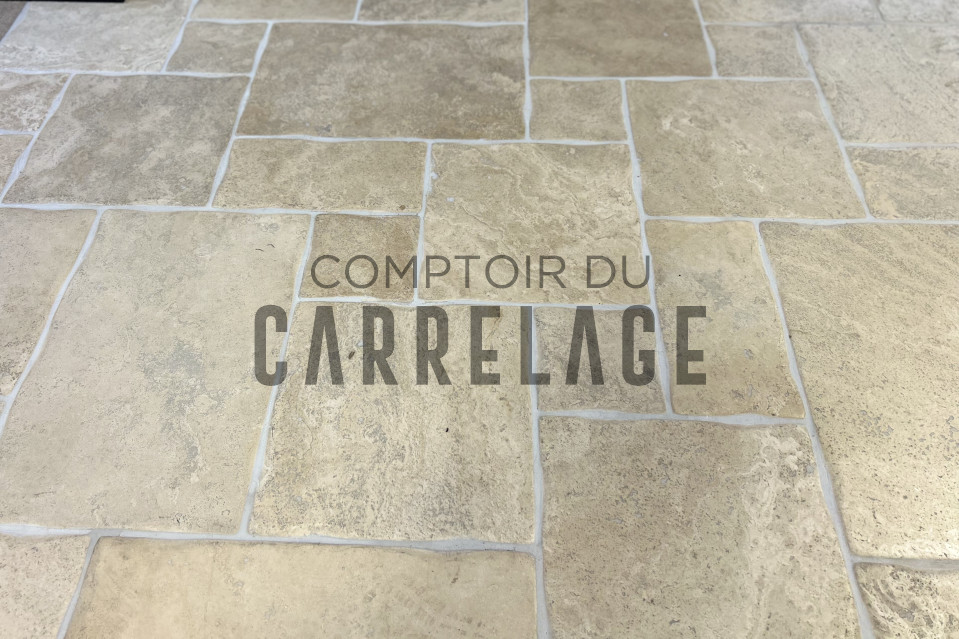 Travertin wave light en Opus 4 formats à bords non droits légèrement ondulés, finition antique.