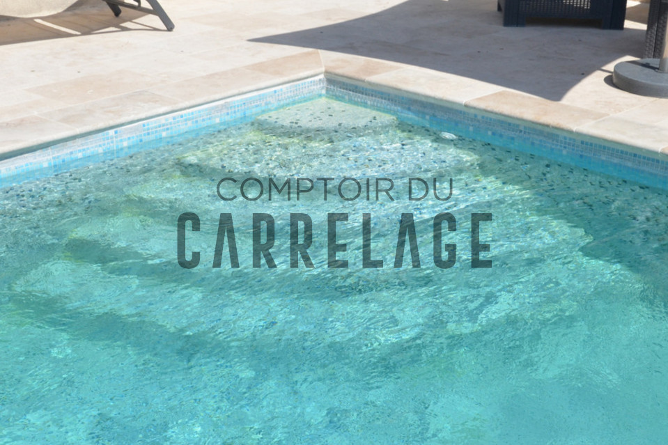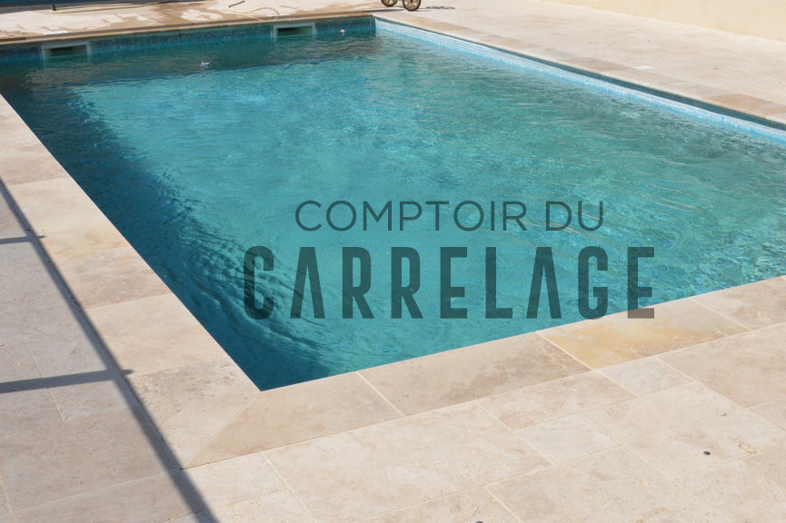 Elle s’intègre parfaitement aux piscines contemporaines comme aux bassins de style plus traditionnel. Le travertin beige permet une harmonisation parfaite avec les plages de piscine et terrasses.
