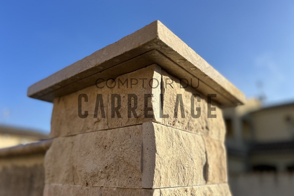 Le travertin supporte très bien les intempéries, l’humidité, le gel, les chocs et les variations de température. Pour des piliers de portail exposés en permanence, il offre une durabilité qui surpasse de nombreux autres matériaux décoratifs.